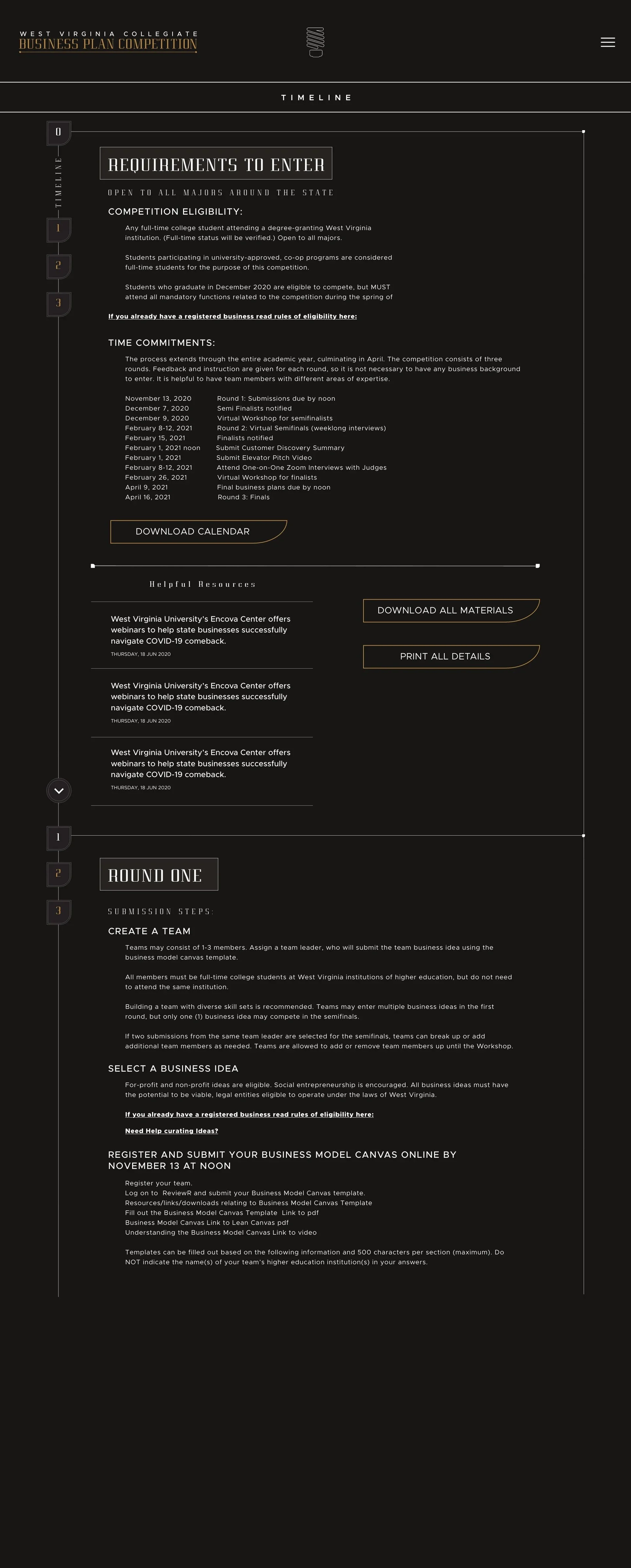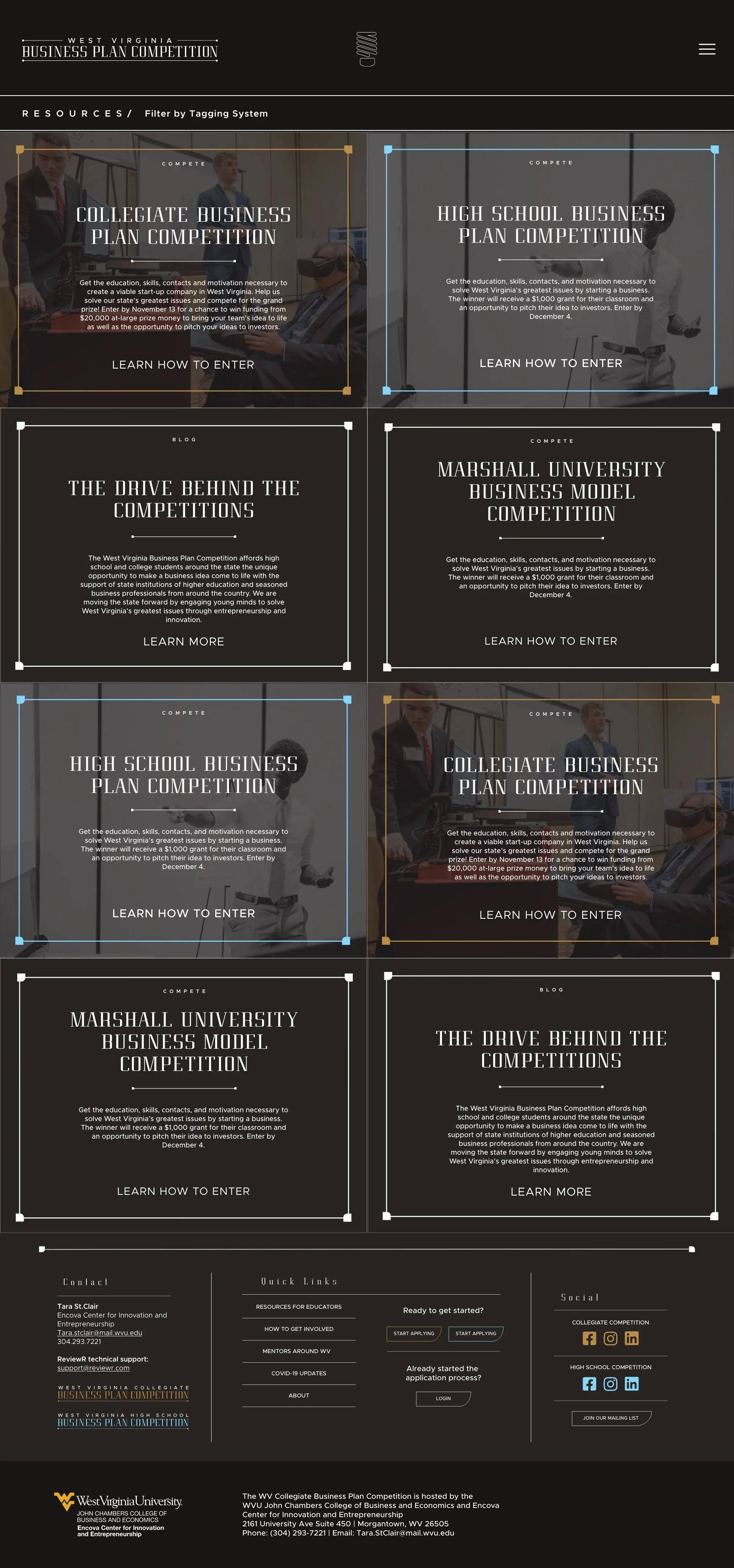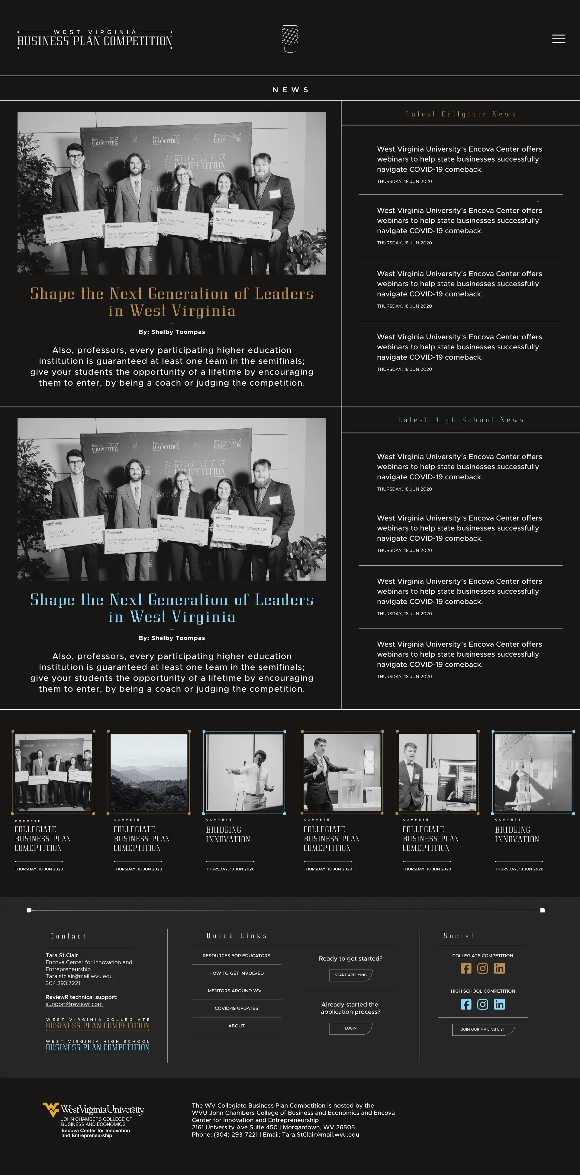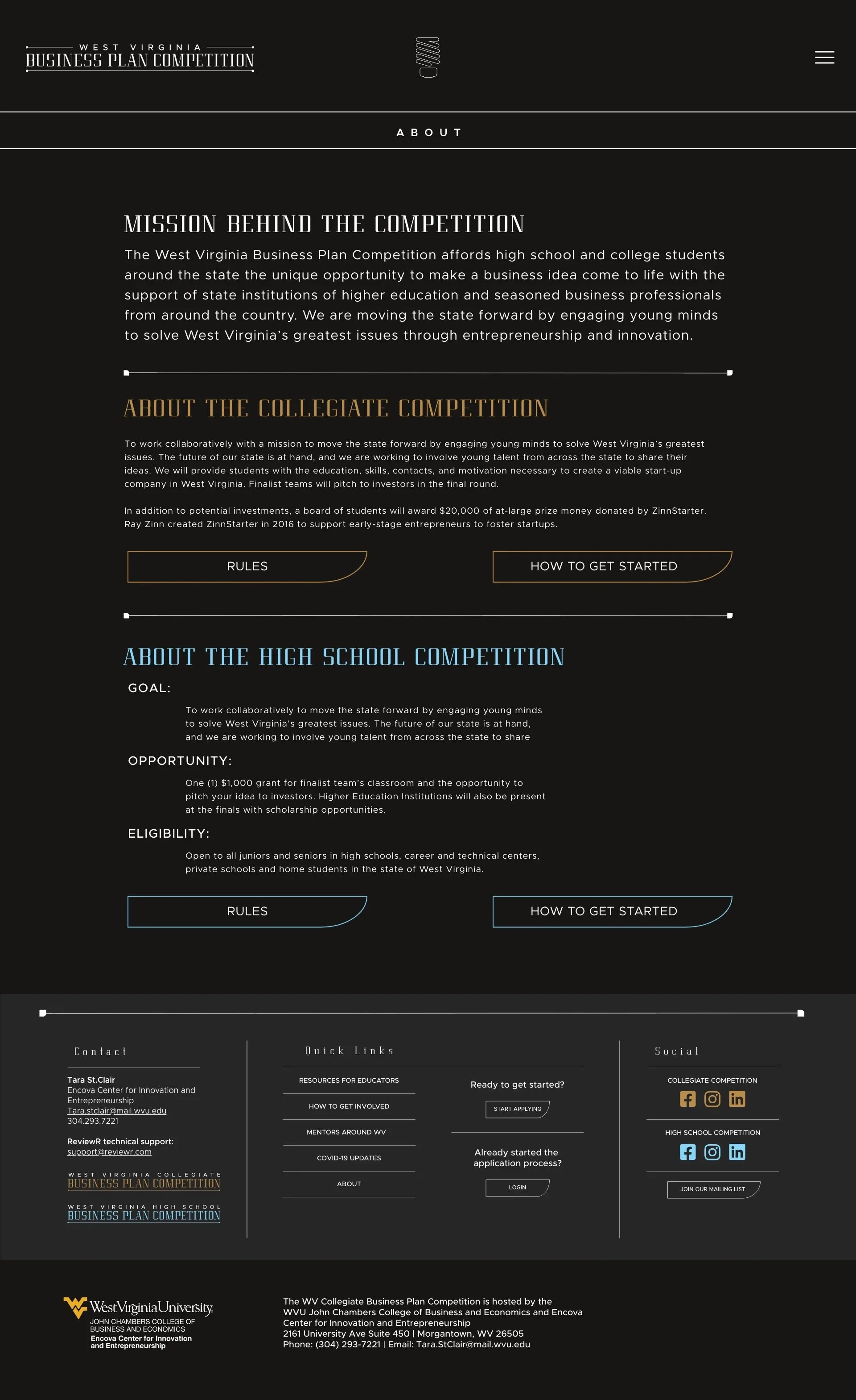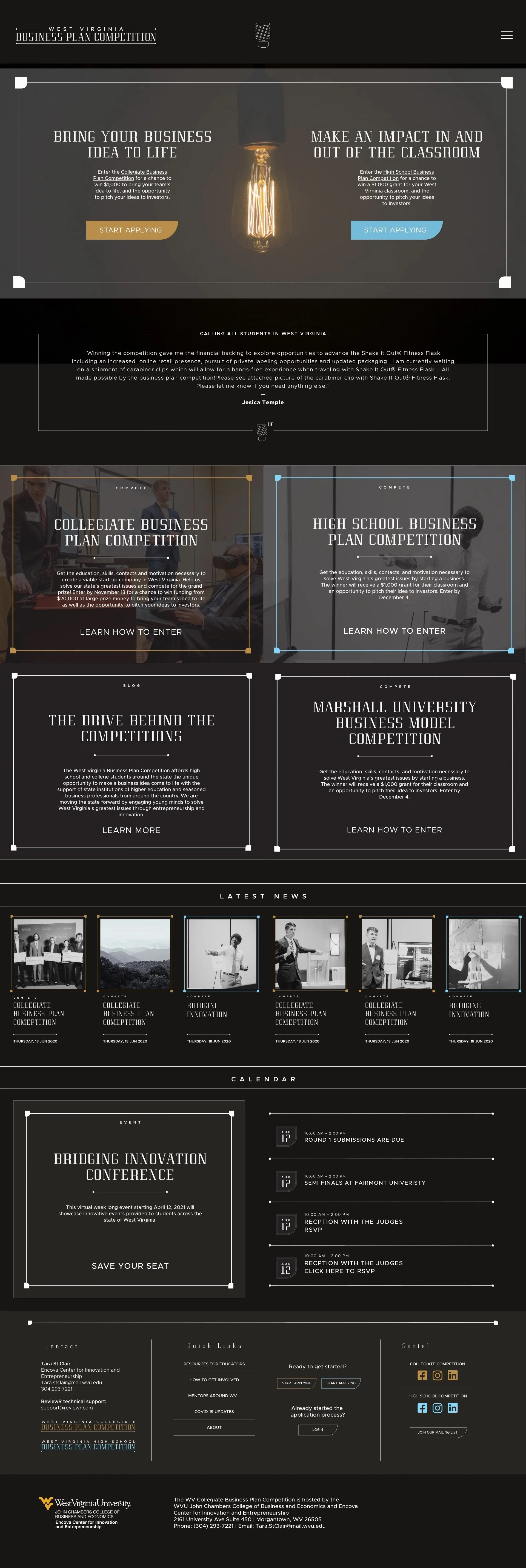 I redesigned businessplanwv.com with an in-house web developer. The previous site was hard to navigate, differentiate between competitions, and the pages were so long with outdated information that also repeated across the site.