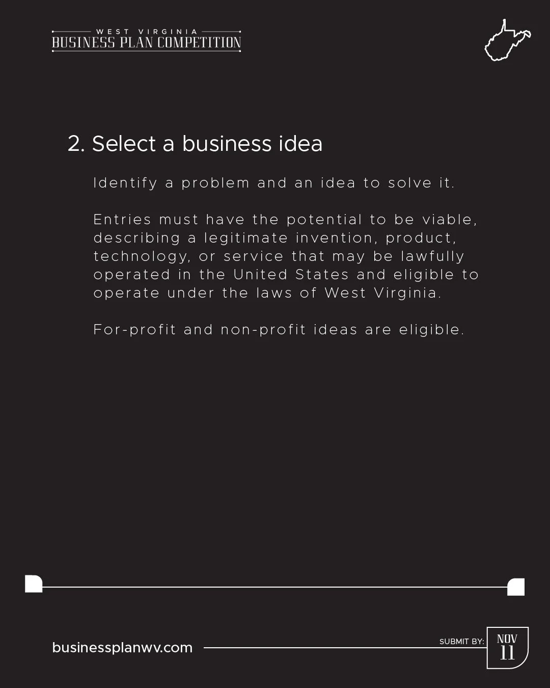 This brand is for an annual competition that is state-wide wide funded. The main goal was to use neutral colors like black and white that wouldn’t lean towards any collegiate school within the state of West Virginia. In the redesign, the client and I also came up with the idea to update the previous classic lightbulb with a more modern lightbulb, better representing the competition that encourages students to spark innovative and creative business plan ideas.  We also needed this brand to work as a system across multiple competitions and leave room for growth.