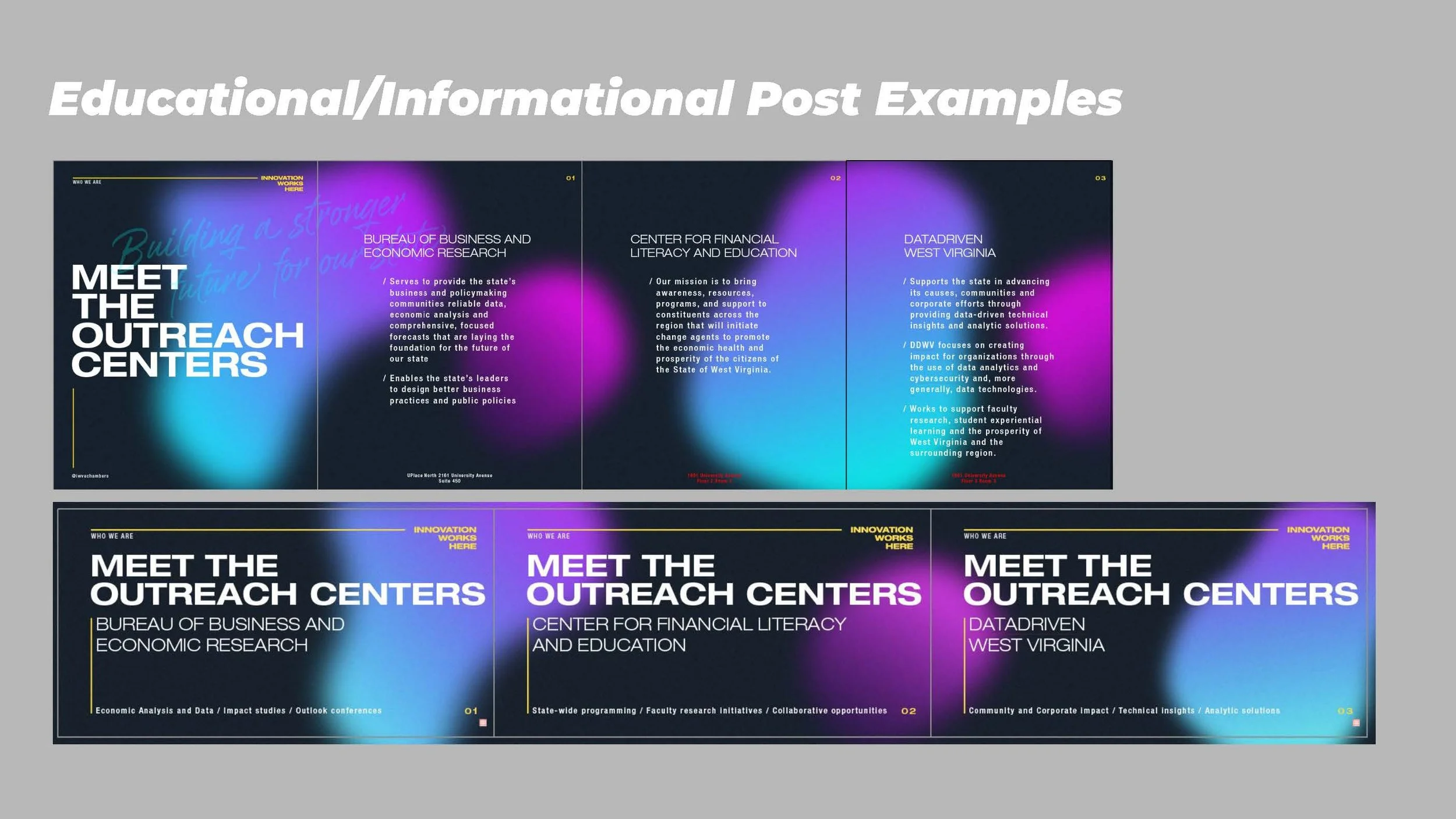 A main function of the accounts and social strategy is to enhance the visibility of the innovation centers and work that they do, by sharing services, resources through a campus and statewide perspective with an inclusive message that also encourages new partnerships that will provide growth.